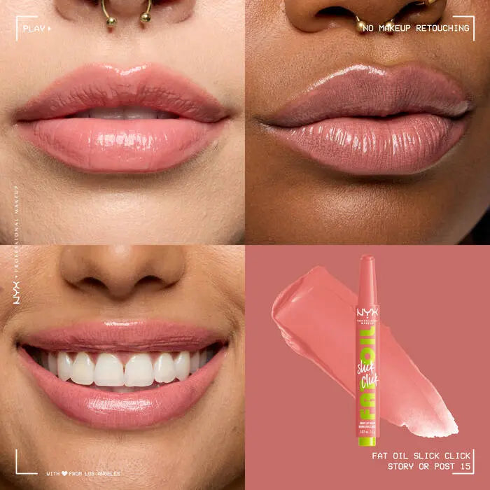 Le NYX Professional Makeup Fat Oil Slick Click Story Or Post est le baume à lèvres ultime dans un format click-up pratique.