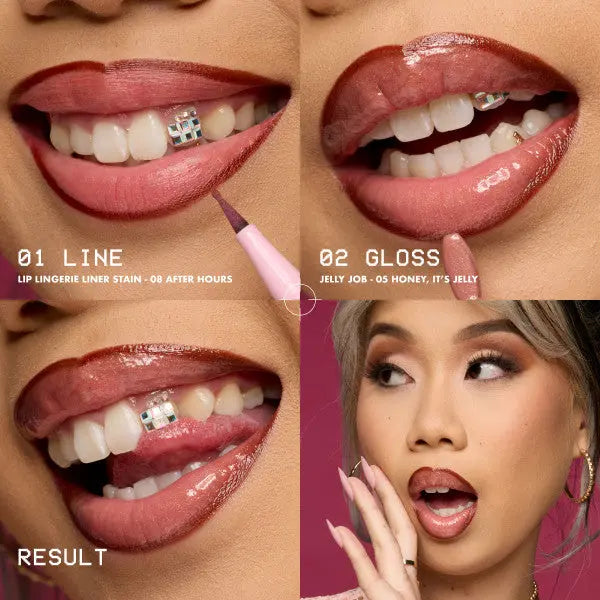 Le Lip Lingerie Lip Liner Stain est sans transfert, ne bave pas et est waterproof, pour une tenue impeccable toute la journée sans bavure. Tu peux l’utiliser pour simplement définir le contour ou pour remplir les lèvres il fait aussi une excellente base pour ton produit pour les lèvres préféré.