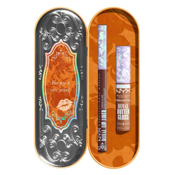 Le NYX Professional Makeup Royal Treasures Duo Lipkit 06 Caramel Courtship + Toffee Temptation est un duo lèvres en édition limitée, inspiré par le glamour élégant de l’univers Bridgerton. Ce coffret contient deux produits parfaitement assortis pour un look lèvres luxueux avec une touche moderne. Que ce soit pour une fête ou pour sublimer un moment du quotidien, ce duo apporte à vos lèvres une touche royale.