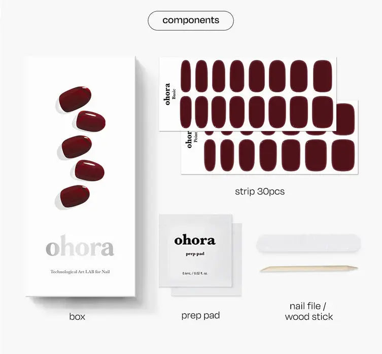 Les Ohora Semi Cured Gel Nail Strips N Classic Burgundy offrent une expérience professionnelle de manucure en gel dans le confort de votre foyer ! Avec ces bandes pour ongles en gel, vous pouvez créer sans effort de beaux ongles durables avec une teinte qui complète n'importe quel look. Grâce à leur conception semi-durcie, ils sont faciles à appliquer et épousent parfaitement la forme de vos ongles. La forme unique en C garantit qu'ils reposent bien sur tout le lit de l'ongle.