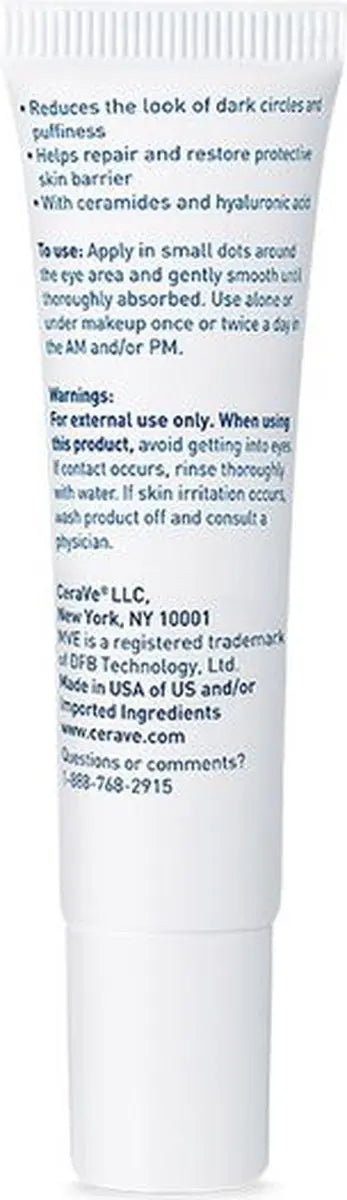 La CeraVe Eye Repair Cream est le sauveur idéal pour les yeux fatigués. Cette crème contour des yeux a été spécialement conçue pour cibler efficacement les cernes, les poches et les ridules. Grâce à un mélange puissant de céramides essentiels et d'acide hyaluronique, la peau sensible autour des yeux est intensément hydratée et réparée.
