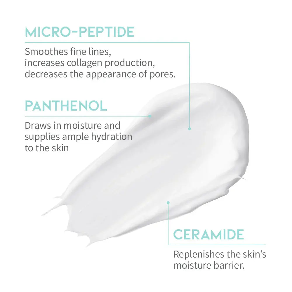 Elle hydrate intensément, prévient la perte d’humidité et offre un boost anti-âge grâce aux peptides. Les céramides renforcent la barrière cutanée, tandis que le panthénol (vitamine B5) apaise et favorise la régénération. Parfaite pour les peaux sèches, sensibles ou stressées en quête de confort et de fermeté. Hello plump & protected skin !