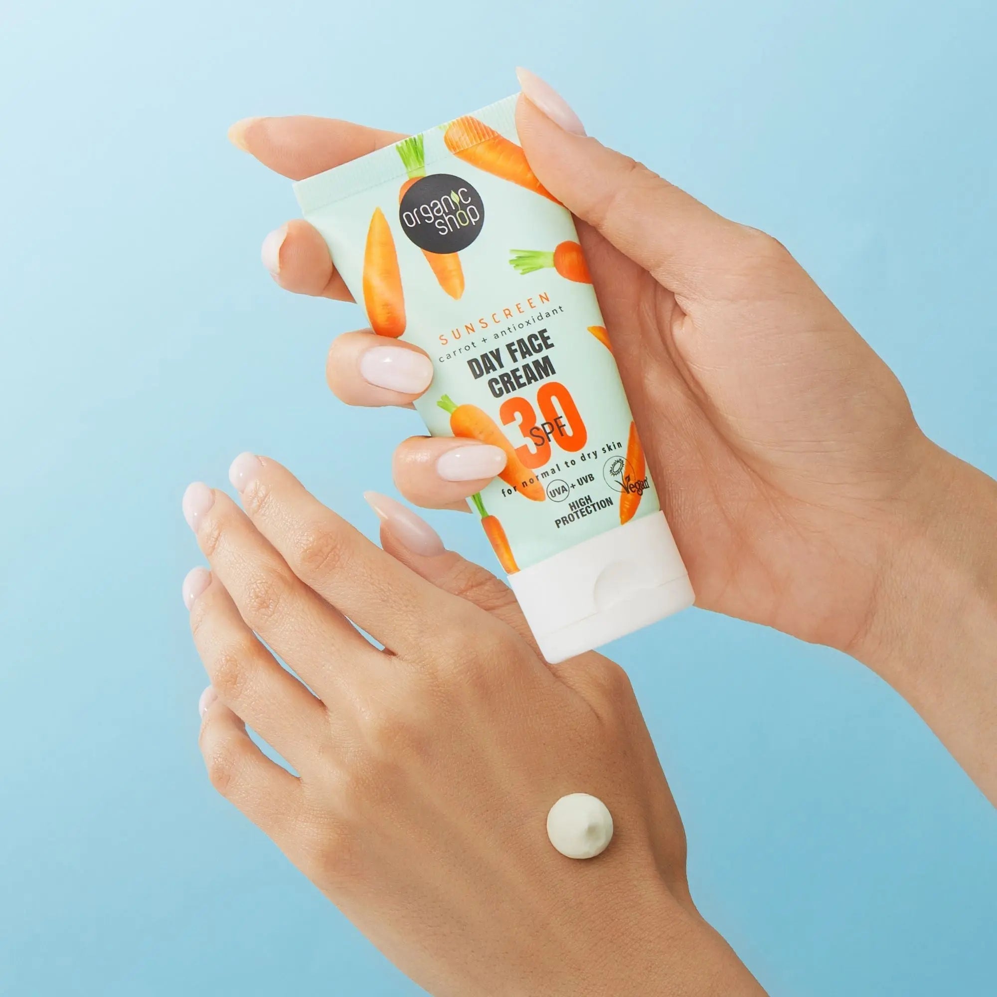 La Organic Shop Sunscreen SPF 30 Day Face Cream Normal To Dry Skin est votre protection solaire quotidienne et soin de la peau en un seul produit. Cette crème de jour hydratante avec SPF 30 offre une haute protection contre les rayons UVA et UVB tout en nourrissant la peau et en aidant à prévenir les dommages causés par le soleil.