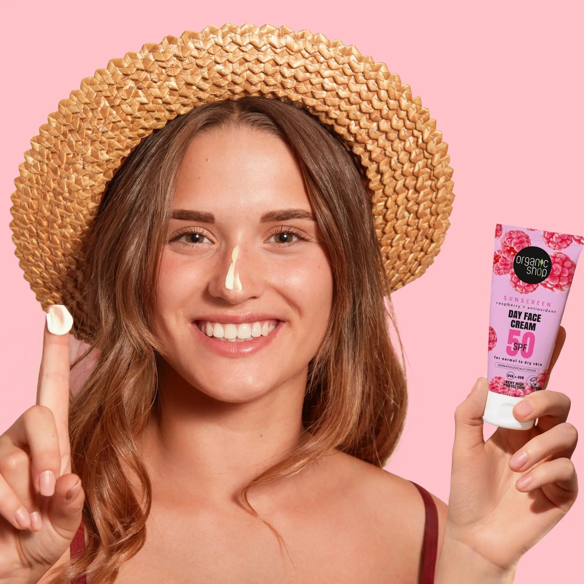 La Organic Shop Sunscreen SPF 50 Day Face Cream Normal To Dry Skin est votre protection quotidienne contre le soleil et le vieillissement prématuré de la peau dans un format pratique. Spécialement conçue pour les peaux normales à sèches, cette crème solaire offre une très haute protection UVA et UVB.