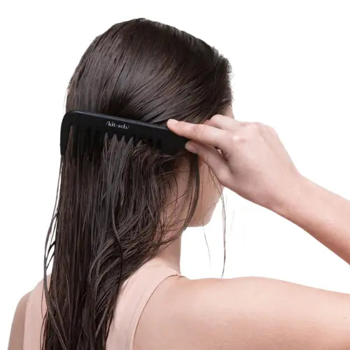 L'utilisation d'un peigne à dents larges peut stimuler le cuir chevelu, ce qui favorise la circulation sanguine et peut améliorer la croissance des cheveux. Les dents larges réduisent la tension et la friction sur les cheveux, ce qui réduit la casse. De plus, le peigne possède une texture antidérapante pratique, ce qui le rend encore plus facile à utiliser.