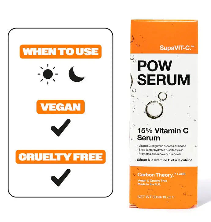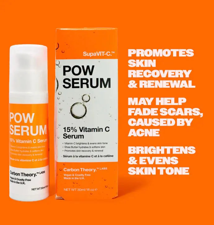 Le Carbon Theory Pow Serum 15% Vitamin C est votre arme secrète pour une peau radieuse et uniforme ! Ce puissant sérum SupaVIT-C a été spécialement développé pour lutter contre la pigmentation et les cicatrices après les éruptions cutanées et rafraîchir visiblement votre peau.