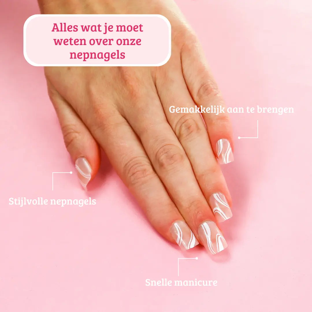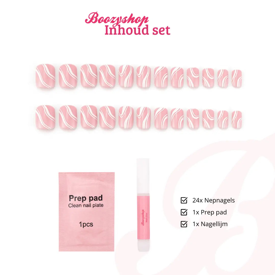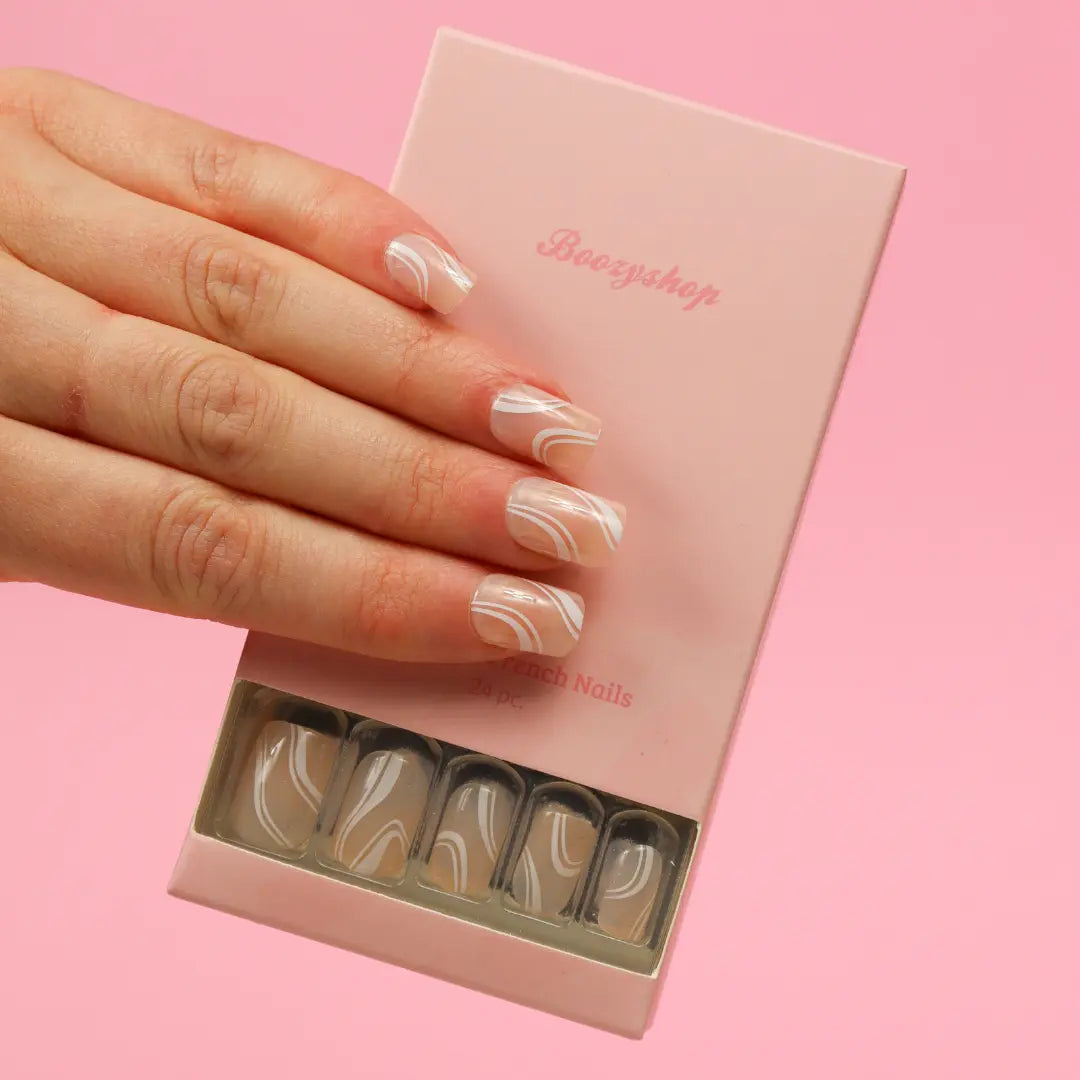 Les Boozyshop Press On French Nails Waves sont la solution parfaite pour de beaux ongles en un instant. Ces ongles artificiels sont non seulement élégants, mais ont également un design subtil en vagues qui donne à vos ongles un look élégant et soigné. Offrez-vous une manucure rapide avec ce lot de presse-ongles, composé de 24 pièces de 12 tailles différentes. Chaque clou est numéroté de 0 à 11, ce qui facilite le choix de la taille la plus adaptée. Cet ensemble contient également de la colle à ongles et un tampon de préparation pour préparer de manière optimale vos ongles pour une adhérence à long terme.