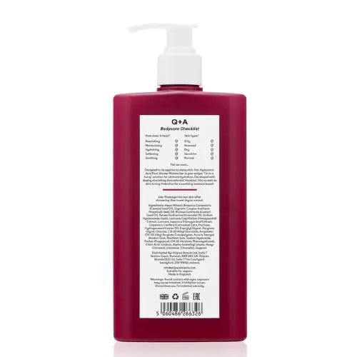 De plus, cette crème hydratante a un parfum merveilleux, un mélange fruité et frais de pomme fraîche et d'avocat, avec des notes subtiles de mimosa, de magnolia et d'olive. Ainsi, que vous soyez pressé ou que vous cherchiez simplement un moyen rapide et efficace d'hydrater votre peau, la crème hydratante pour peau humide à l'acide hyaluronique Q+A est votre nouveau meilleur ami.