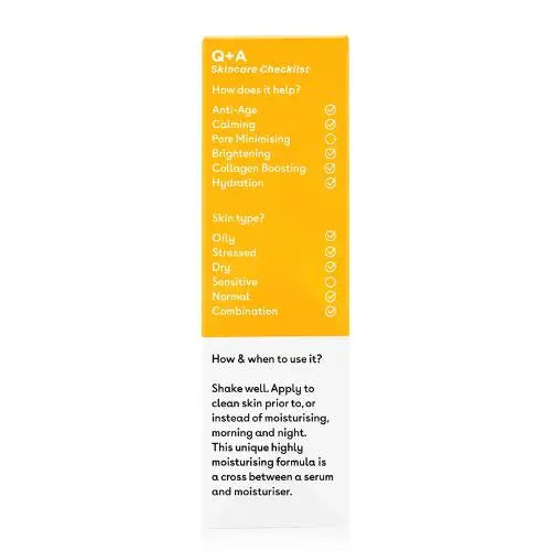Q+A Vitamin C Brightening Serum est un sérum riche en antioxydants et hydratant spécialement développé pour rafraîchir et éclaircir votre peau.