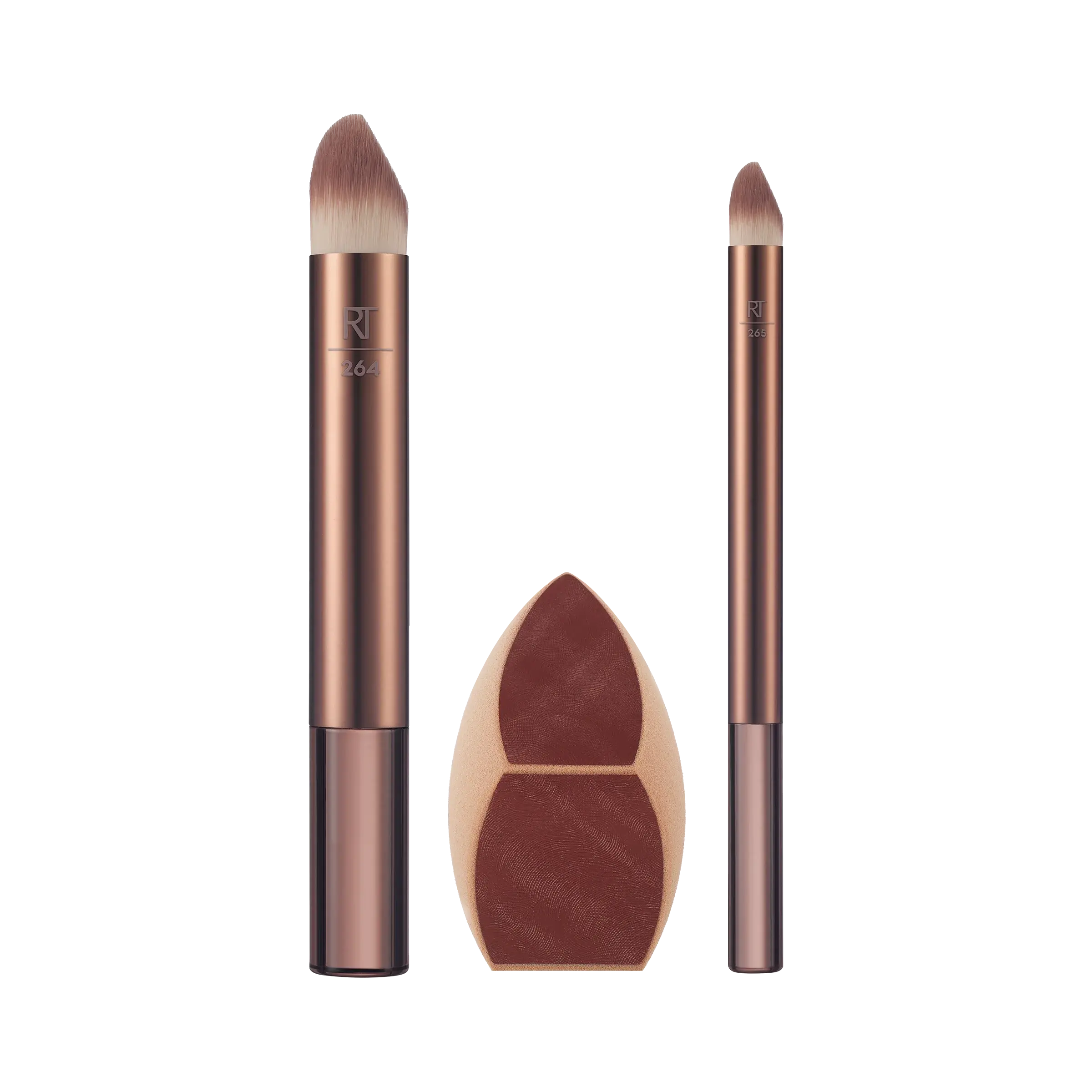 Le Real Techniques Makeup Saver Sponge + Brush Trio est votre kit ultime pour un maquillage impeccable et naturel ! Ce trio comprend le 267 Makeupsaver Base Brush, le 265 Makeupsaver Concealer Brush et l’innovant Makeupsaver Sponge. Leurs formes uniques ont été spécialement conçues pour reproduire l’effet des doigts et offrir une application ultra-naturelle.