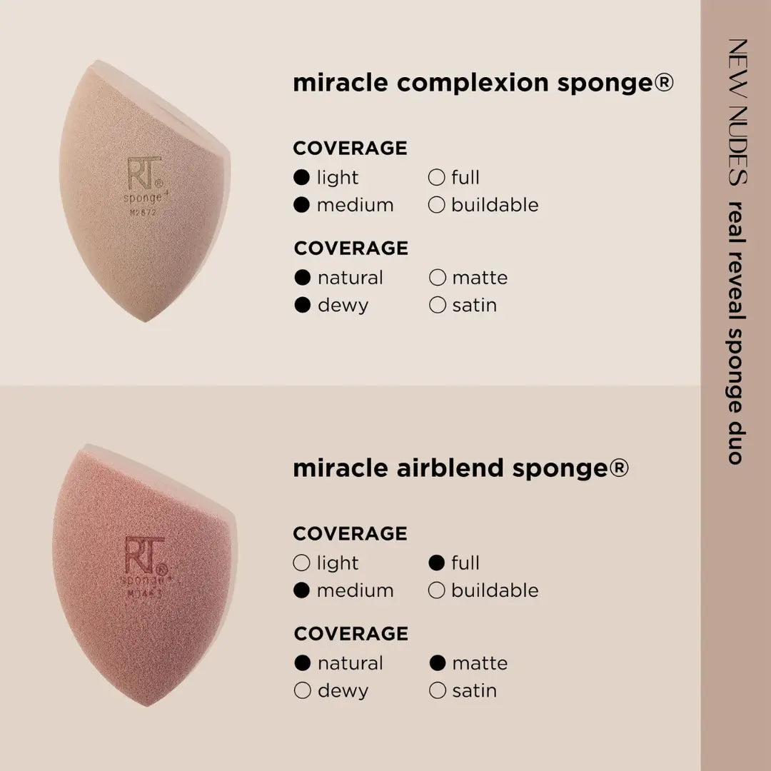 Le Real Techniques Miracle Powder Sponge 2 Pack contient deux éponges les plus vendues à un prix super sympa ! Cet ensemble comprend l'éponge Miracle Complexion pour un éclat naturel et rosé et l'éponge matifiante Miracle Airblend pour un fini mat élégant. Les deux éponges fonctionnent parfaitement avec les formules liquides et crèmes. Utilisez le MCS humide et le MAS sec pour des résultats optimaux.