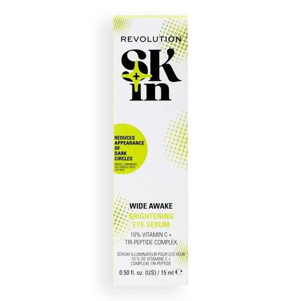 Le Revolution Skin Wide Awake 10% Vitamin C & Tri-Peptide Brightening Eye Serum est la solution pour les yeux fatigués et le regard terne. Cette formule puissante et hydratante est conçue pour réduire rapidement les poches et les cernes, laissant la peau du dessous de vos yeux plus fraîche, plus lumineuse et plus uniforme. Avec un effet cliniquement prouvé en 8 heures, ce sérum illumine la peau et vous donne une apparence énergique. Idéal pour commencer la journée en pleine forme ou pour redonner un coup d'éclat à vos yeux après une longue nuit.