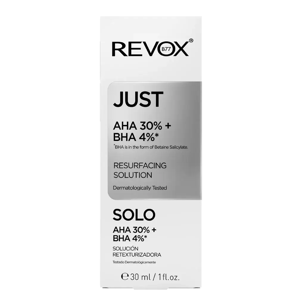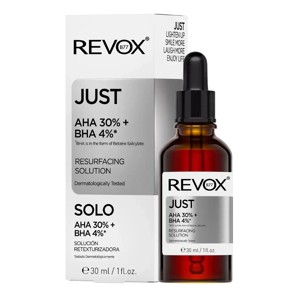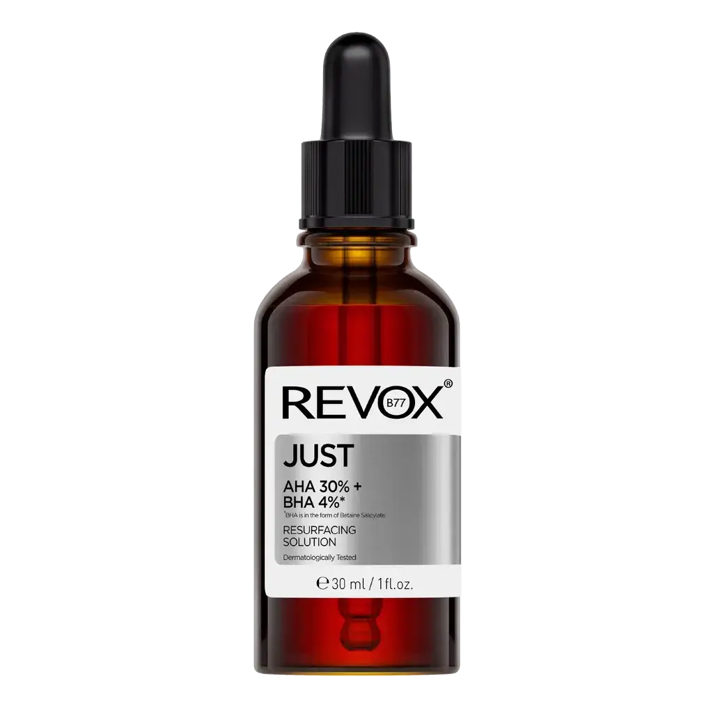 La Revox Just Aha 30% + Bha 4% Resurfacing Solution est un peeling puissant qui renouvelle et illumine votre peau, idéal pour tous ceux qui rêvent d'un teint lisse et éclatant. Avec la concentration ultime d'acides exfoliants tels que l'AHA (acide lactique et glycolique) et le BHA (salicylate de bétaïne), ce peeling aide à éliminer les cellules mortes de la peau et à nettoyer en profondeur vos pores.