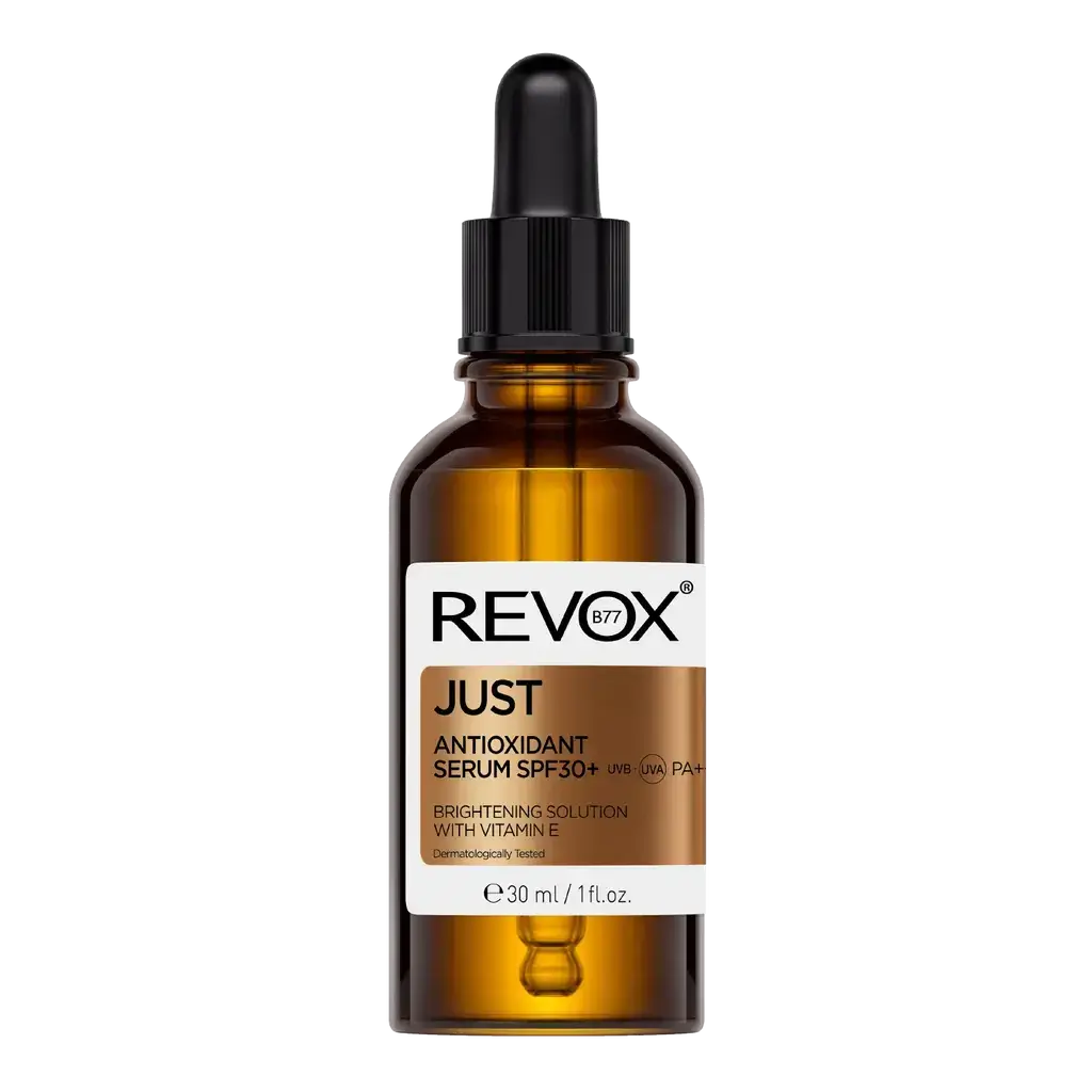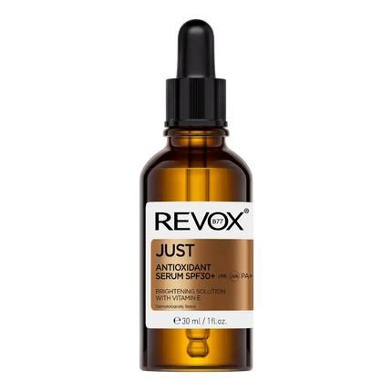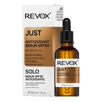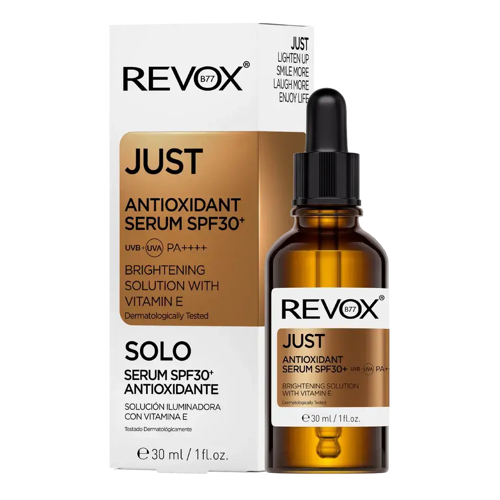 Le Revox Just Antioxidant Serum SPF 30+ est une solution éclaircissante et lissante pour le visage et le cou. Ce sérum protège la peau contre les facteurs externes nocifs, tels que la pollution et les rayons UV, qui peuvent entraîner une pigmentation et un vieillissement prématuré. Grâce à de puissants antioxydants, il réduit les ridules et aide à garder la peau résistante.