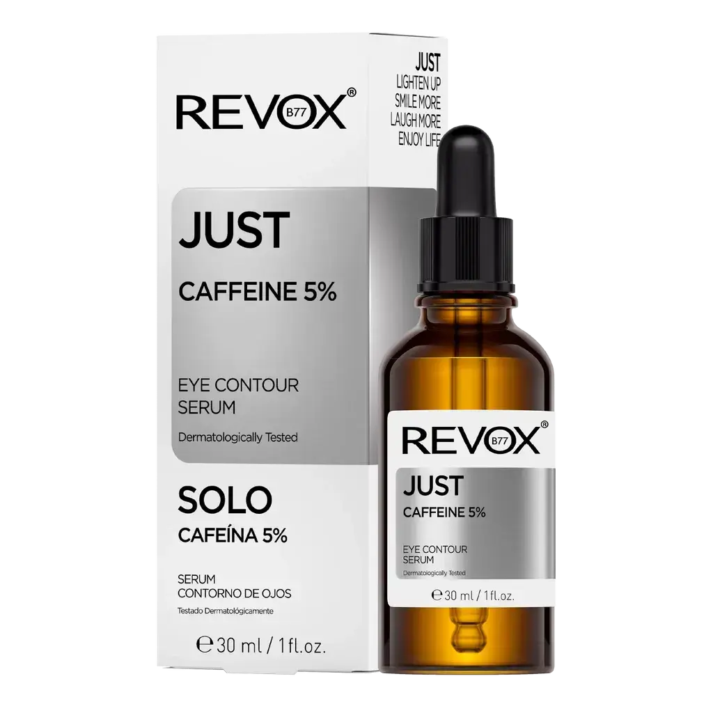 Le Revox Just Caffeine 5% Eye Contour Serum est un sérum pour les yeux puissant qui s'attaque efficacement aux yeux gonflés et aux cernes. La caféine, un puissant antioxydant, offre une protection contre les radicaux libres, les rayons UV et la pollution. En plus de son effet protecteur, la Caféine a également un effet raffermissant sur la peau, ce qui contribue à atténuer les poches et les cernes.