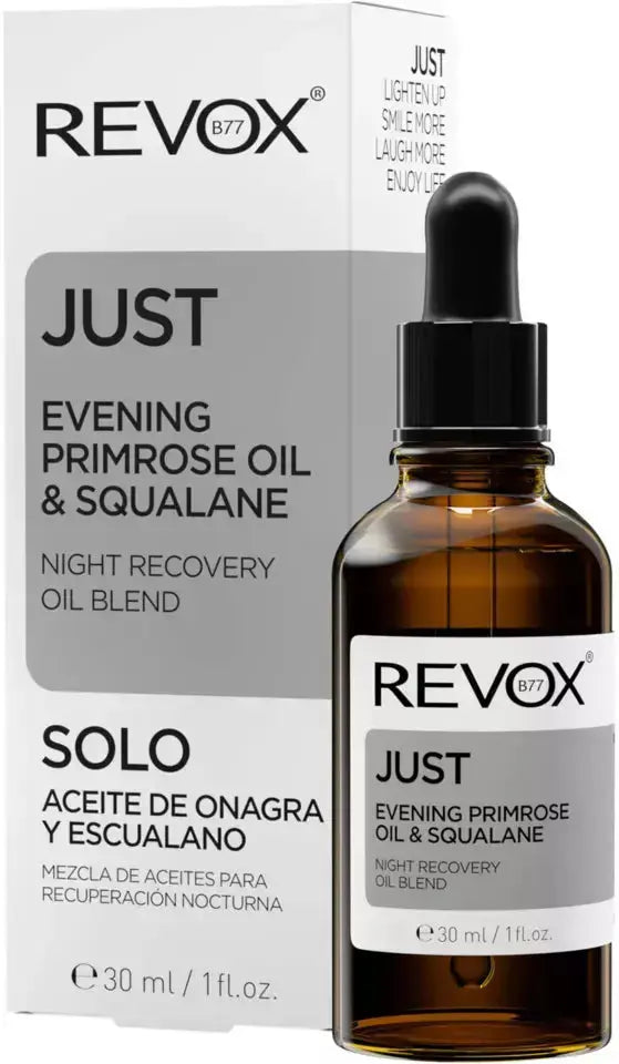Le Revox Just Evening Primrose Oil & Squalane est l'incontournable de votre routine du soir ! Ce mélange nourrissant associe des huiles telles que l'huile d'onagre, l'huile de rose musquée et l'huile de pépins de raisin, toutes riches en acide linoléique. Cet acide gras essentiel hydrate intensément et contribue à renforcer la barrière cutanée.