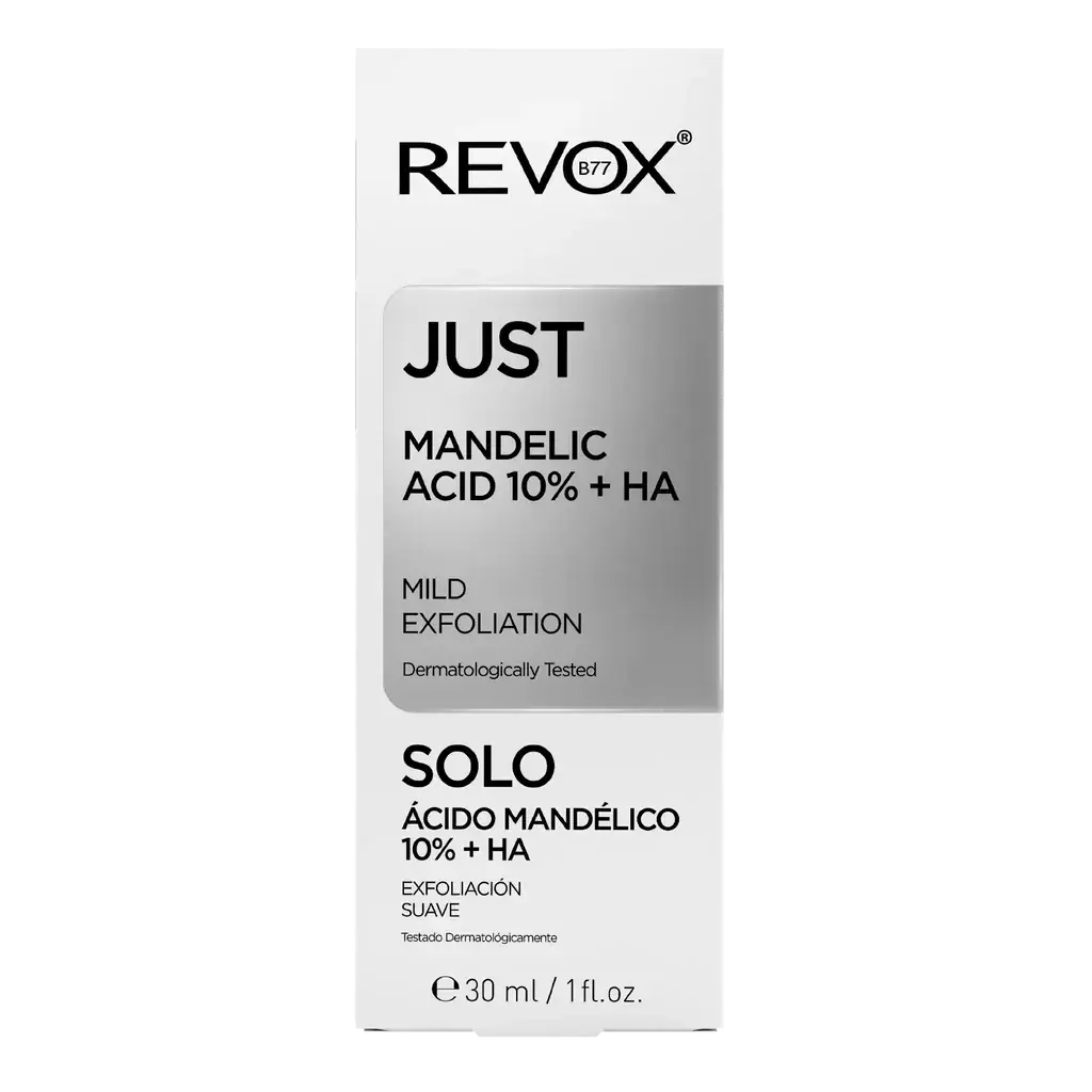 Le Revox Just Mandelic Acid 10% + Ha Mild Exfoliation est un sérum exfoliant doux pour le visage et le cou qui affine et illumine le grain de votre peau. L'acide mandélique, dérivé des amandes amères, est un AHA doux, ce qui le rend parfait pour les peaux sensibles et à tendance acnéique. Le sérum élimine les cellules mortes de la peau, rétrécit les pores et rend votre peau fraîche et lisse.