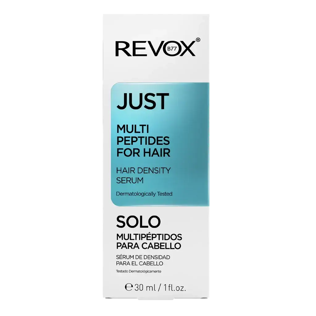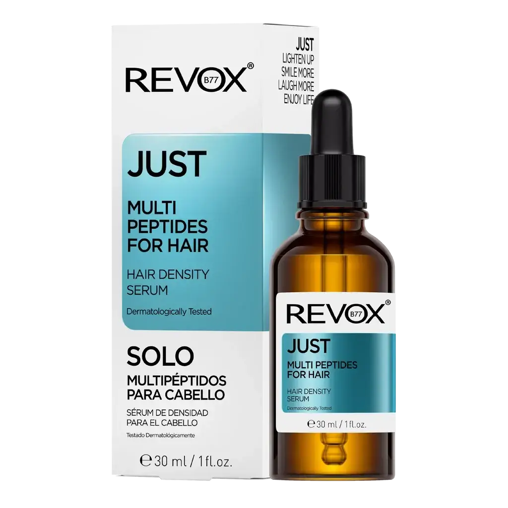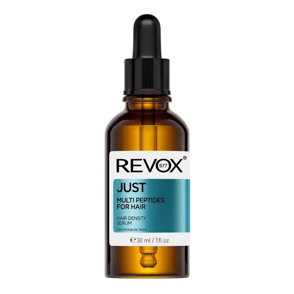 Le Revox Just Multi Peptides For Hair Density Serum est un sérum peptidique avancé pour le cuir chevelu qui aide à favoriser le volume et la densité des cheveux. Ce sérum stimule les follicules pileux grâce à un puissant mélange de complexe peptidique, de caféine et de panthénol.