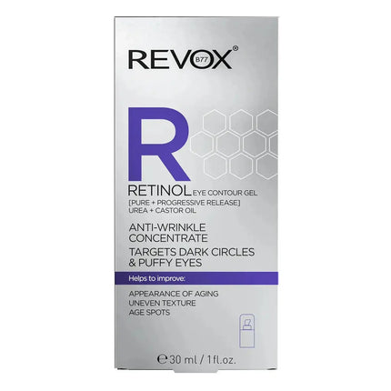 Le Revox Retinol Eye Gel Anti Wrinkle Concentrate est un gel concentré pour les yeux enrichi en vitamine A, spécialement développé pour réduire les signes du vieillissement de la peau délicate du contour des yeux. Cette formule au rétinol et à l'urée agit efficacement sur les ridules, les rides et les cernes liés aux pigments.