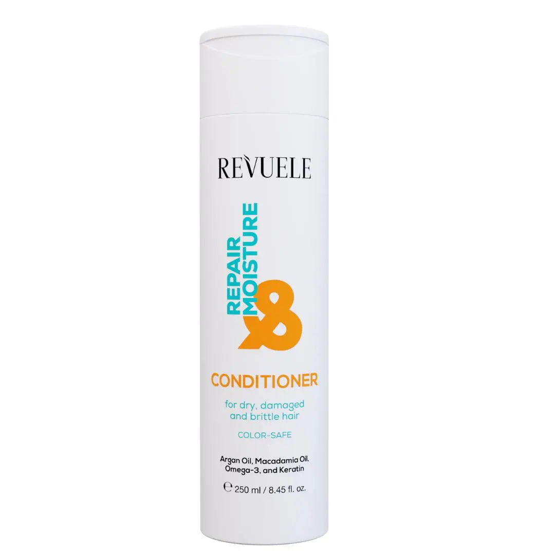 Le Revuele Conditioner Repair & Moisture est spécialement formulé avec un mélange unique de vitamines et d'huiles pour nourrir et revitaliser intensément vos cheveux pour des résultats dignes d'un salon. L'huile d'argan redonne souplesse et brillance à chaque mèche de cheveux, tandis que l'huile de macadamia hydrate et laisse vos cheveux doux et soyeux. Les oméga-3 renforcent les cheveux de l'intérieur, réduisent la casse et favorisent la résilience.