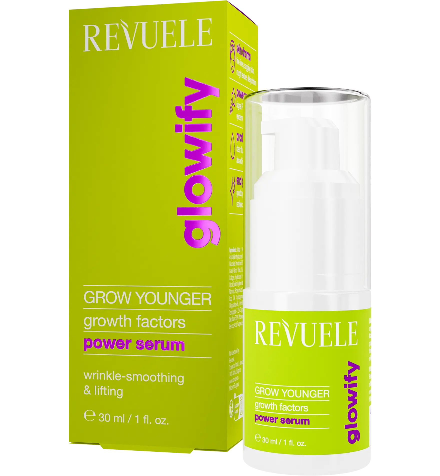 Le Revuele Grow Younger Serum Growth Factors est ton boost anti-âge en flacon ! Ce sérum puissant aide à lisser visiblement les rides et procure un effet liftant et raffermissant à ta peau. Grâce aux facteurs de croissance avancés, ta peau reçoit le soutien nécessaire pour rester jeune, lisse et tonique.