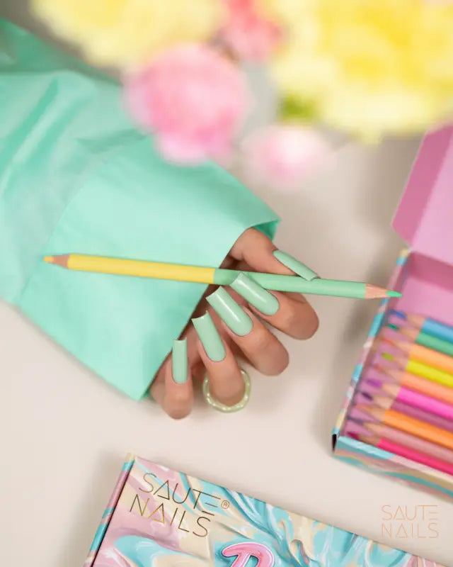 Le Saute Nails UV Gelpolish S295 Minty Chill est une teinte menthe pastel fraîche qui allie douceur et touche subtile de fraîcheur. Cette couleur lumineuse et harmonieuse apporte calme et légèreté à tous les looks d’ongles. Que vous préfériez une manucure minimaliste ou que vous souhaitiez vous amuser avec du nail art pastel, Minty Chill offre toujours un aspect élégant et moderne.