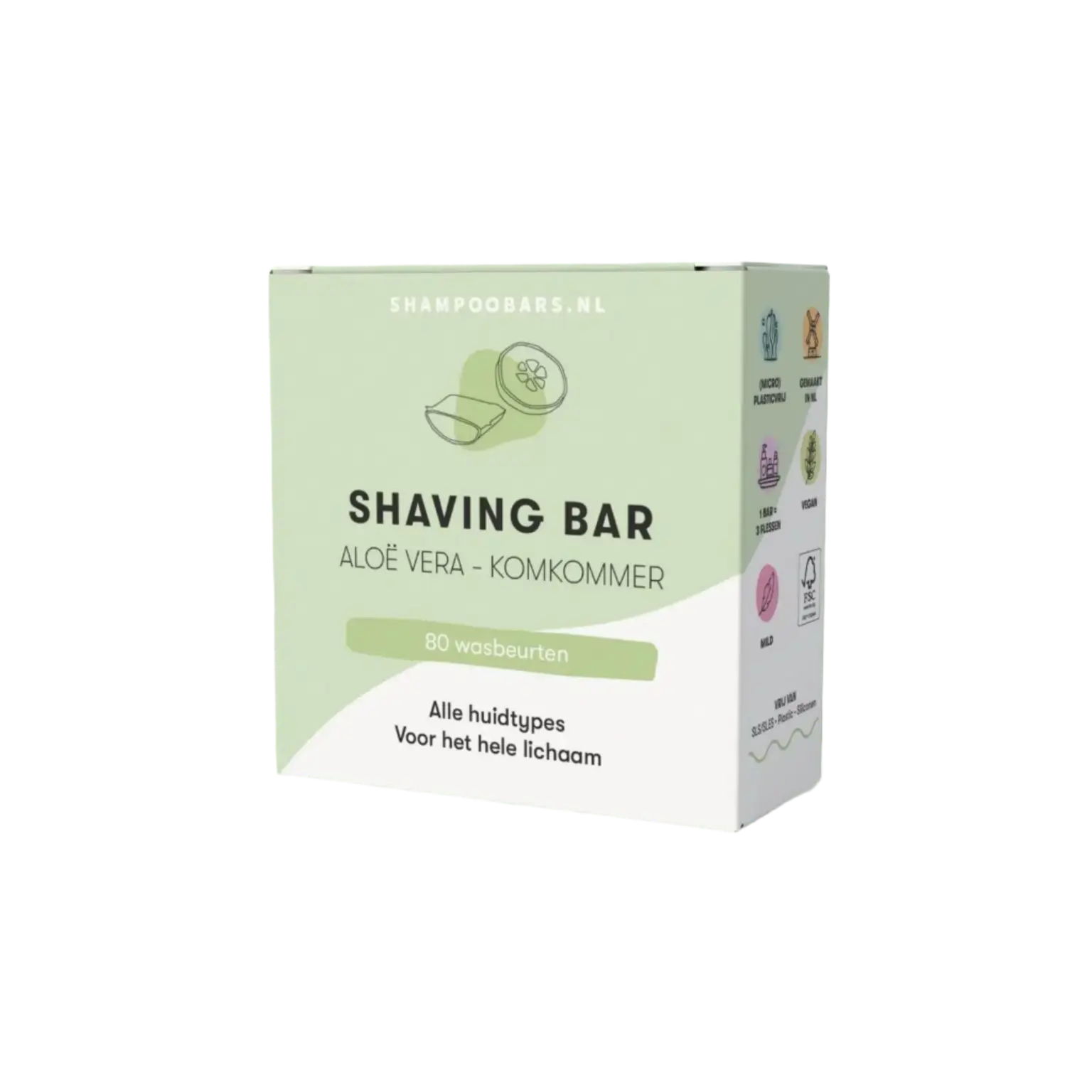 Le Shampoo Bars Shaving Bar Aloe Vera et Concombre est votre allié pour un rasage doux et soigné, sans les tracas des mousses à raser traditionnelles. Ce pain solide mousse légèrement sans sulfates, n’irrite pas la peau et reste bien en place pour une expérience de rasage agréable et efficace.