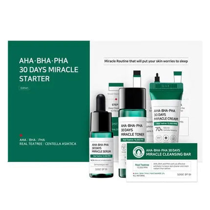 Miracle Cleansing Bar 30 gr.: Lauric Acid, Sodium Stearate, Saponified Palm Oil, Sodium Laurate, Sodium Myristate, Stearic Acid, Glycerin, Sorbitol, Lauramidopropyl Betaine, Sodium Hyaluronate, Niacinamide, Chlorella Vulgaris (Dermochlorella Algae) Powder, Triticum Vulgare (Wheat) Sprout Powder, Melaleuca Alternifolia (Tea Tree) Extract, Houttuynia Cordata Extract, Glycyrrhiza Glabra (Licorice) Root Extract, Leontopodium Alpinum (Edelweiss) Extract, Olea Europaea (Olive) Fruit Oil, Argania Spinosa (Argan) Oil, Camellia Sinensis (Green Tea) Seed Oil, Hydrolyzed Adansonia Digitata (Baobab) Extract, Salix Alba (White Willow) Bark Extract, Centella Asiatica (Gotu Kola) Extract, Pyrus Malus (Apple) Fruit Extract, Citrus Limon (Lemon) Fruit Extract, Citrus Aurantium Dulcis (Orange) Fruit Extract, Betula Platyphylla Japonica Bark Extract, Hydrolyzed Potato Protein, Hydrolyzed Wheat Protein, Hydrolyzed Rice Protein, Hydrolyzed Oat Protein, Lactobionic Acid, Melaleuca Alternifolia (Tea Tree) Leaf Oil, Tetrasodium Edta.