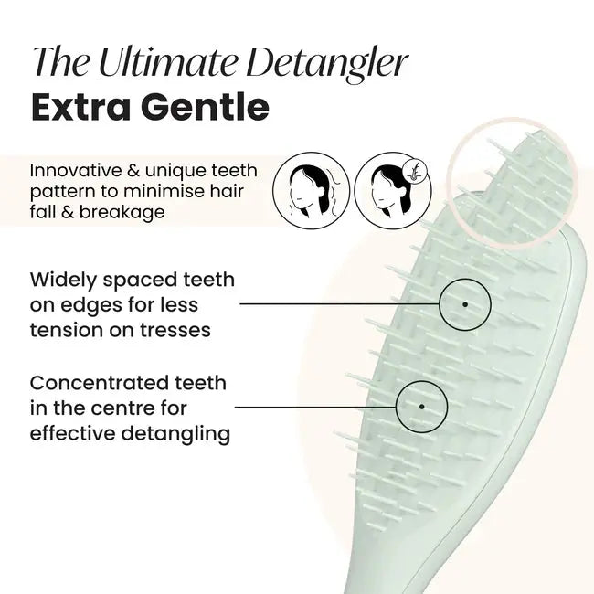 La Tangle Teezer Ultimate Detangler Extra Gentle Eucalyptus est la brosse idéale pour les cheveux fins, fragiles ou sensibles. Vous souffrez de chute de cheveux ou vous avez peur de brosser vos cheveux ? Cette brosse a été spécialement conçue pour être extrêmement douce avec vos mèches, sans compromettre son pouvoir démêlant. Parfaite sur cheveux mouillés ou secs, sans tiraillement ni casse !