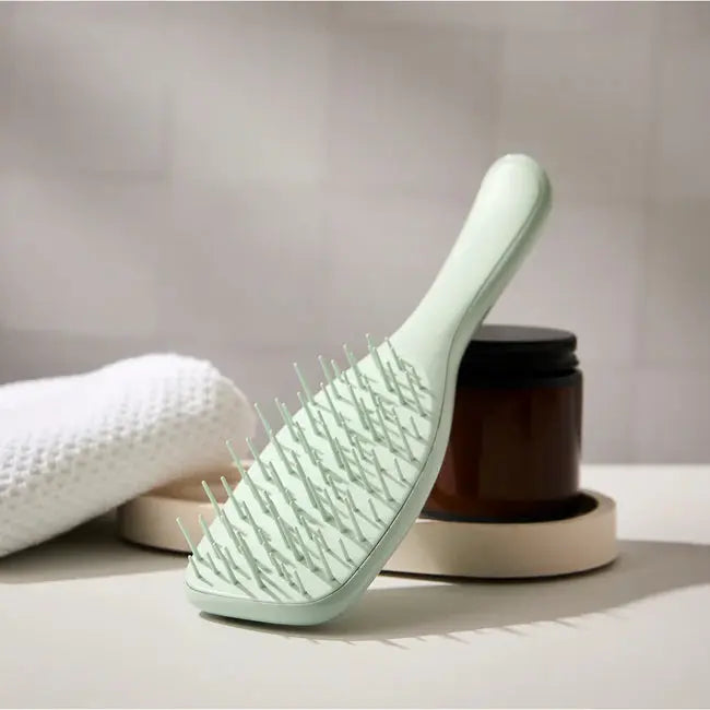 Grâce à son design unique avec des dents plus espacées sur les bords et un motif plus dense au centre, cette brosse démêle les cheveux en douceur – avec moins de tension et donc moins de risque de casse. Un indispensable pour celles et ceux qui prennent leur routine capillaire au sérieux.
