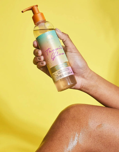 Le Tree Hut Bare Moisturizing Shave Oil Tropic Glow est ton nouvel indispensable pour une peau douce et éclatante. Sa formule unique gel-en-huile permet un rasage tout en douceur, sans irritation, coupures ou boutons. Le parfum chaud et estival aux notes d’amande, d’ambre doré et de bois de santal australien transforme chaque rasage en un véritable moment de plaisir tropical.