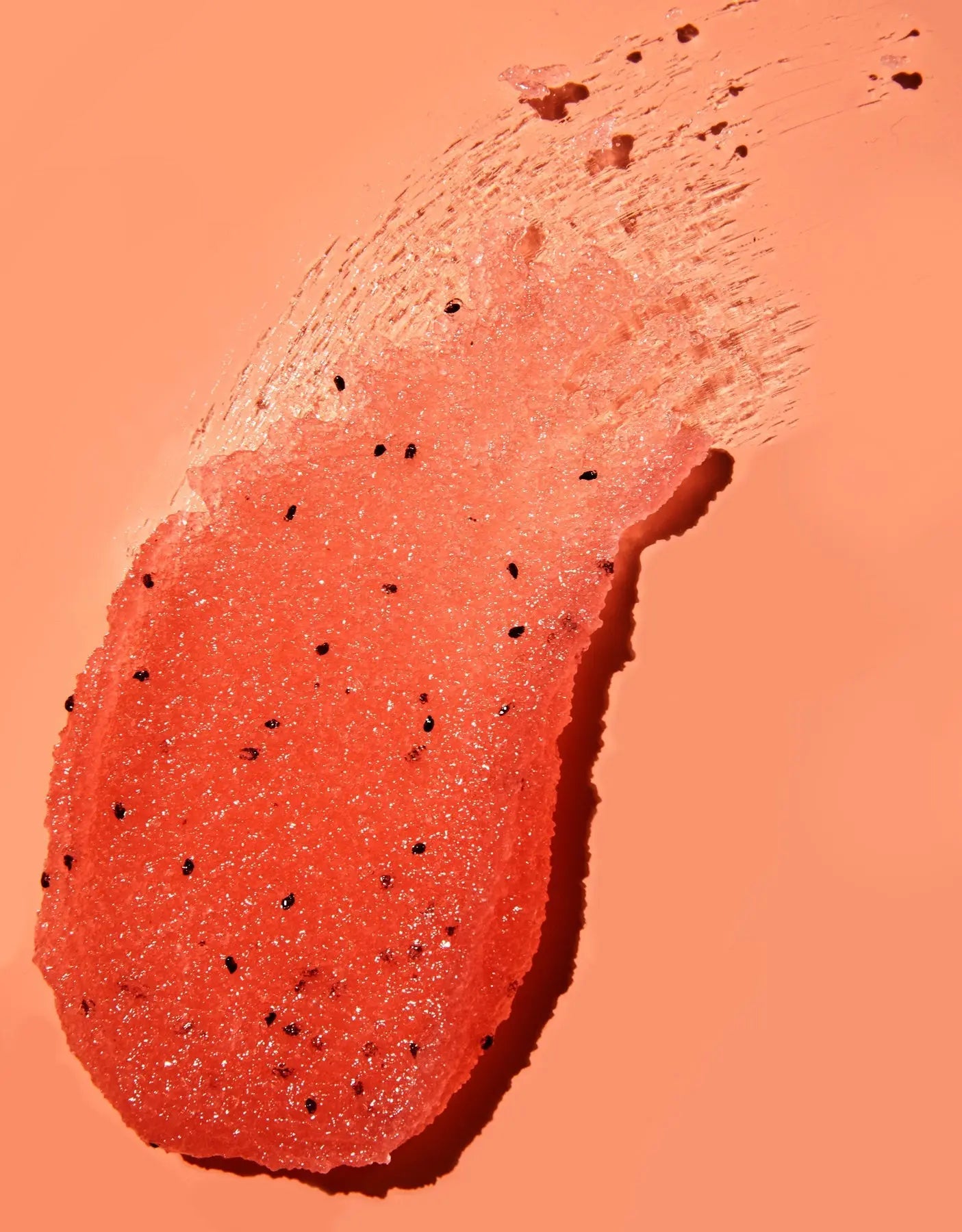Sucrose, Glycerin, Polysorbate 20, Silica, Actinidia Chinensis (Kiwi) Seeds, Persea Gratissima (Avocado) Oil, Butyrospermum Parkii (Shea) Butter, Carthamus Tinctorius (Safflower) Seed Oil, Prunus Amygdalus Dulcis (Sweet Almond) Oil, Oenothera Biennis (Evening Primrose) Oil, Macadamia Ternifolia Seed Oil, Aloe Barbadensis Leaf Juice, Citrus Aurantium Dulcis (Orange) Oil, Citrullus Vulgaris (Watermelon) Fruit Extract, Rice Amino Acids, Hydrolyzed Soy Protein, L-proline, Hydrolyzed Adansonia Digitata Seed Extract, Niacinamide, Aqua (Water/eau), Ascorbic Acid, Retinyl Palmitate, Fragrance (Parfum), Phenoxyethanol, Sorbic Acid, Caprylyl Glycol, Benzyl Benzoate, Citral, Red 4 (Ci 14700), Red 33 (Ci 17200).