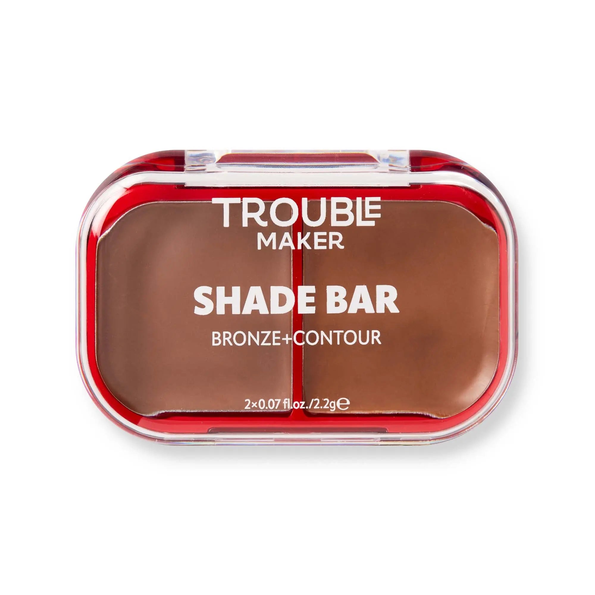 Het Trouble Maker Shade Bar Bronze and Contour Duo Rock + Roll is jouw go to duo voor een sculpted, sun kissed look in één swipe. Met een bronzer en contour in één palette geef je je gezicht direct meer warmte en definitie, zonder gedoe.