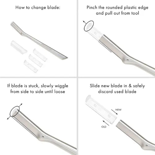 Les lames en acier inoxydable sont durables, hygiéniques et faciles à nettoyer. Ce rasoir facial est réutilisable et est livré avec 3 lames de rechange pour que vous puissiez en profiter longtemps. Vous bénéficiez également d'un capuchon de sécurité pour le stockage.