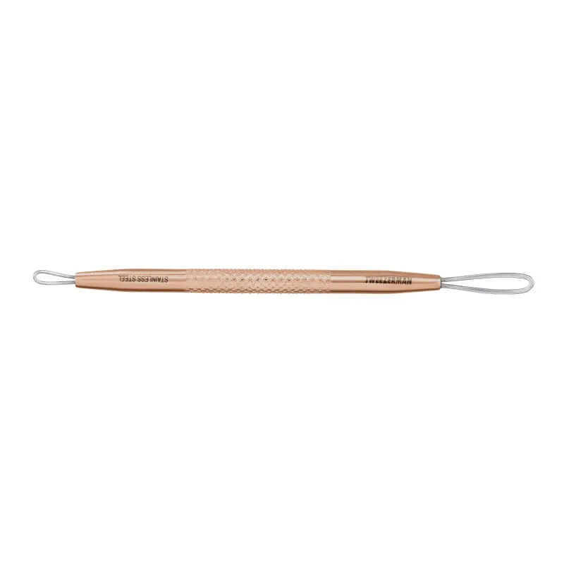 Le Tweezerman Rose Gold No Slip Skincare Tool est ta nouvelle arme secrète pour une peau lisse et nette. Cet outil élégant en rose doré t’aide à éliminer les points blancs et les points noirs de manière sûre et hygiénique – sans tracas et sans abîmer ta peau.