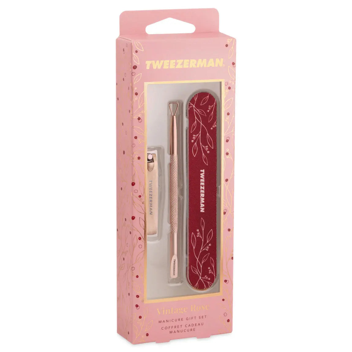 Le Tweezerman Vintage Rose Manicure Gift Set est le coffret en édition limitée qui donnera à tes ongles un glow festif parfait. Avec ces outils indispensables, tu as tout sous la main pour limer tes ongles et prendre soin de tes cuticules avec précision.