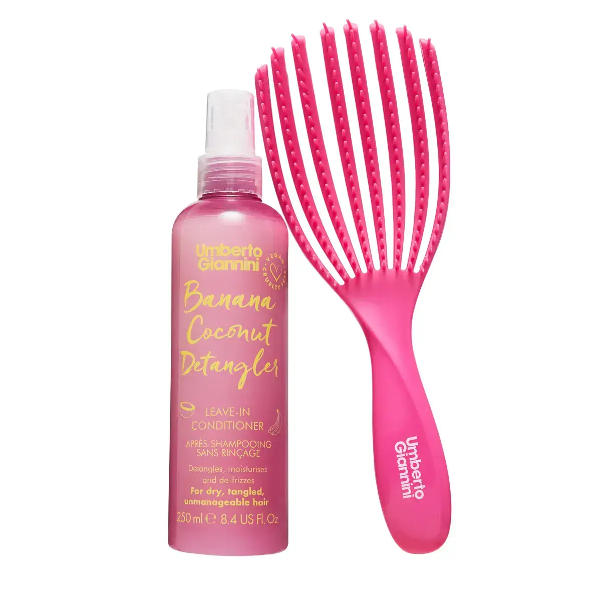 Le Umberto Giannini Tangle No More Gift Set est votre solution pour des cheveux secs, frisottés et indisciplinés ! Cet ensemble en édition limitée pour les fêtes comprend un duo puissant : une brosse démêlante et un spray nourrissant sans rinçage, parfaits pour garder vos cheveux sains, hydratés et sans nœuds.
