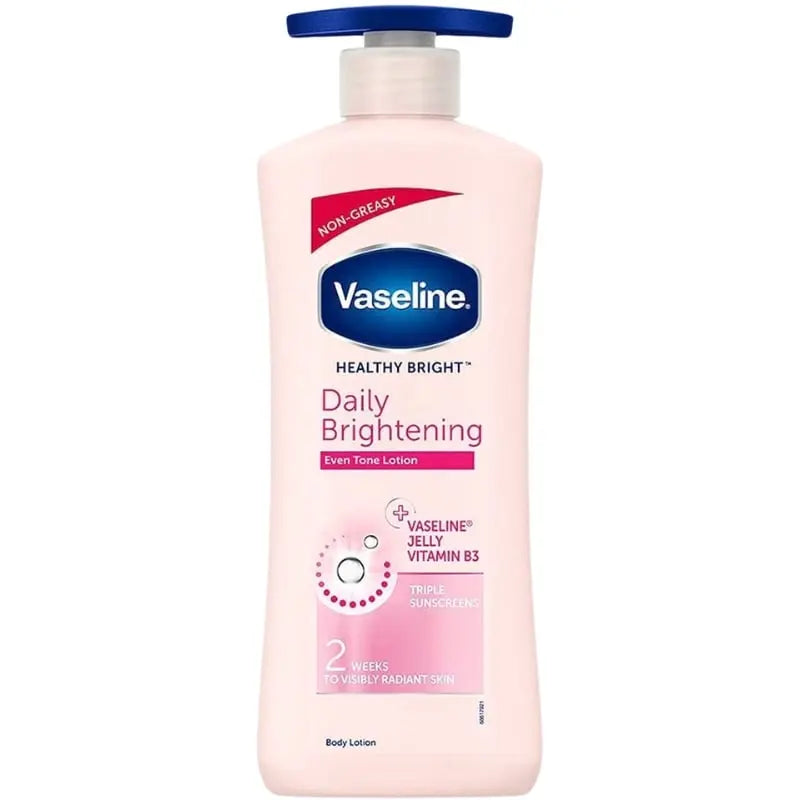 Le Vaseline Body Lotion Daily Brightening 600 ml est une lotion corporelle nourrissante qui aide la peau à retrouver son éclat naturel. Sa formule légère et rapidement absorbée hydrate intensément et rend la peau visiblement plus lumineuse et plus saine en seulement deux semaines. Enrichie en micro-gouttelettes de Vaseline® Jelly, cette lotion favorise la réparation de la peau en offrant une hydratation longue durée, réduisant les zones sèches et laissant la peau douce et souple.