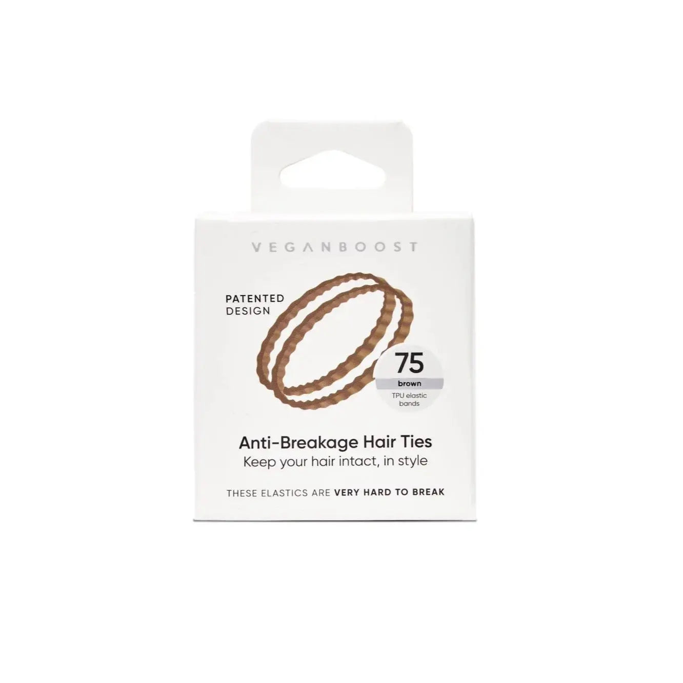 Les Veganboost Anti Breakage Hair Ties Brown sont un ensemble essentiel de 75 petits élastiques pour cheveux conçus avec un bord dentelé spécial pour une prise ferme sur vos cheveux. Que vous choisissiez une queue de cheval, une tresse ou autre coiffure, ces élastiques assurent que votre coiffure reste en place toute la journée, même lors d'activités actives !