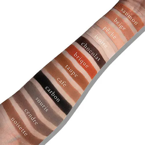 Shades 1 (Cannelle), 2 (Beige), 3 (Pêche), 4 (Ivoire), 5 (Chocolate), 6 (Brique), 7 (Taupe), 8 (Café), 9 (Carbon), 10 (Souris), 11 (Cendre), 12 (Noisette): Talc, Mica, Octydodecyl Stearoyl Stearate, Zinc Stearate, Sodium Benzoate, Potassium Sorbate. Vegan Shades: 1,2,3,4,6,7,8,9,10,11,12. (+/- May Contain: Titanium Dioxide Ci 77891, Iron Oxides Ci 77491/ci 77492/ci 77499, Carmine Ci 75470, Black 2 Ci 77266).