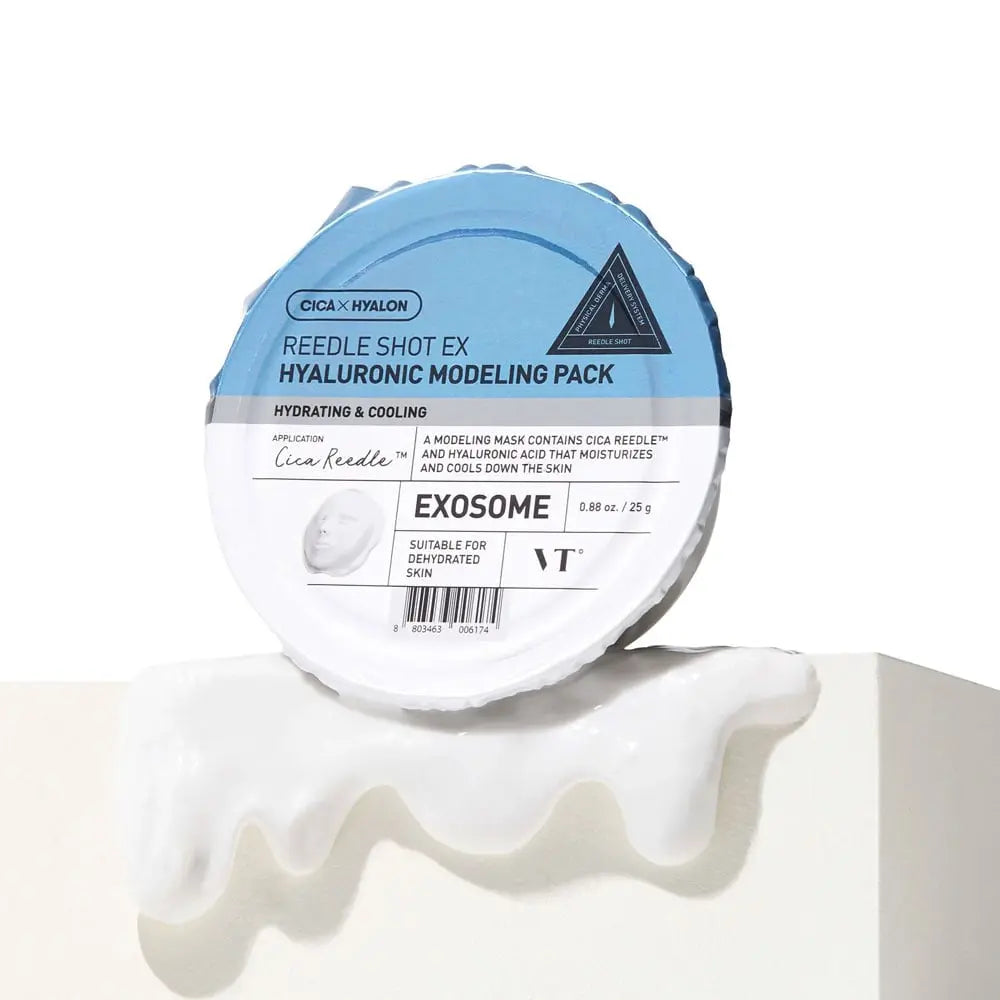 Le VT Cosmetics Reedle Shot EX Hyaluronic Modeling Pack est un masque alginate hydratant qui apporte un boost intense d’hydratation à votre peau et aide à améliorer son élasticité. Grâce à la combinaison unique de Sodium Hyaluronate et d’Exosomes de lait, la peau est profondément nourrie, tandis que la texture douce peel-off laisse un fini frais, lisse et souple. Parfait pour les peaux sèches, ternes ou fatiguées en quête de réconfort !