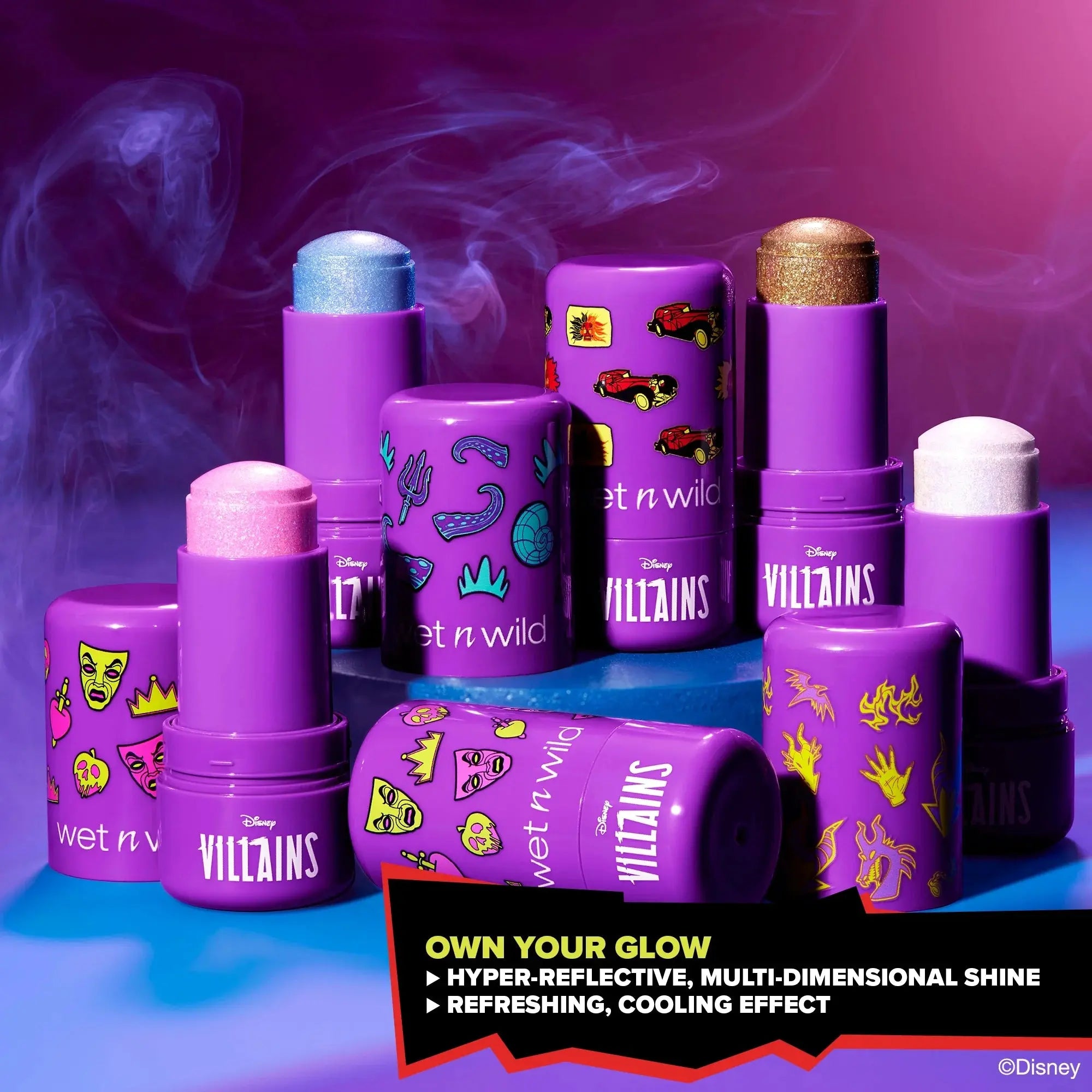 À l’application, tu ressens un effet subtilement rafraîchissant, tandis que l’highlighter glisse facilement sur la peau. La couleur est modulable, te permettant de choisir entre un éclat doux et frais ou une brillance intense et audacieuse. Parfait pour une touche finale magique avec une villain edge.