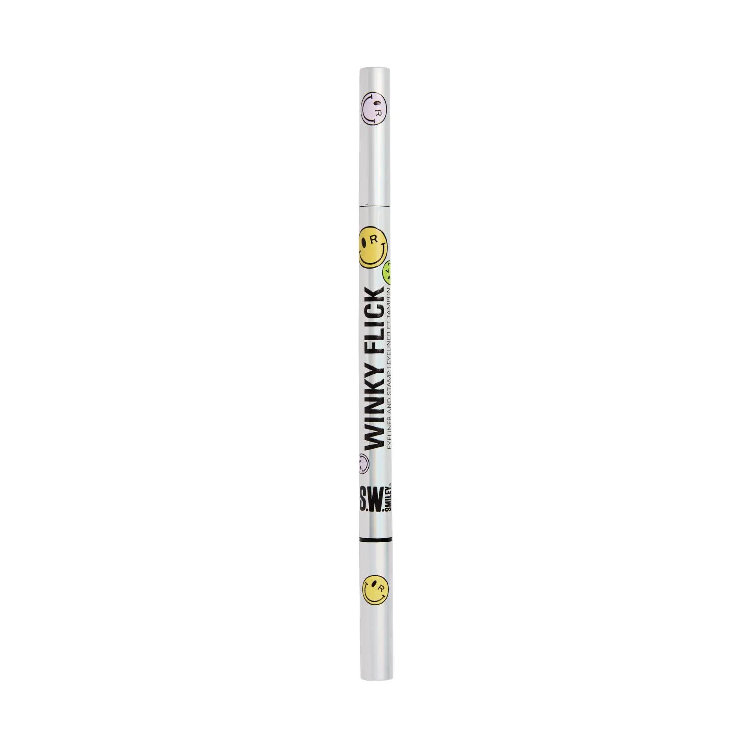 Le Revolution x S.W.Smiley Winky Flick Double-Ended Eyeliner est parfait si tu aimes les lignes nettes et les détails ludiques dans un seul produit. D’un côté, tu retrouves un eyeliner noir intense qui glisse facilement sur la peau et offre une définition précise. Idéal pour des winged liners nets ou un regard classique et intense.