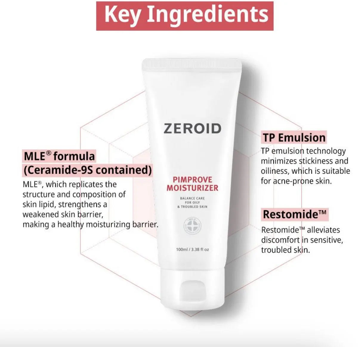 Le ZEROID Pimprove Moisturizer est la solution idéale pour les peaux sensibles, grasses ou à problèmes qui ont besoin d’apaisement et de renforcement. Ce soin léger mais nourrissant aide à réduire les rougeurs, rééquilibre la peau et renforce la barrière cutanée. Pas d’effet collant, juste une peau douce, saine et bien hydratée !